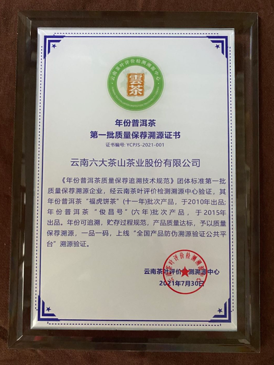 2010年“?;灢琛?、2015年“俊昌號(hào)”(六年)榮獲年份普洱茶保薦溯源