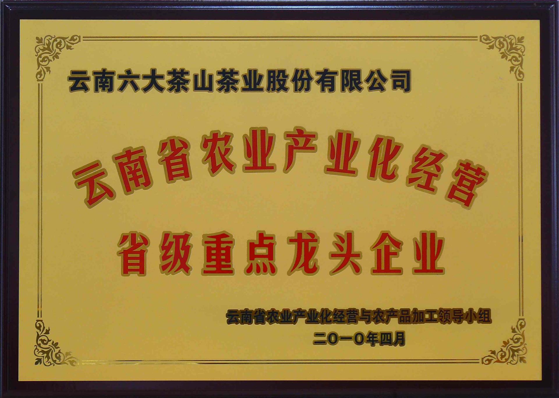 云南省農(nóng)業(yè)產(chǎn)業(yè)化經(jīng)營省級重點(diǎn)龍頭企業(yè)